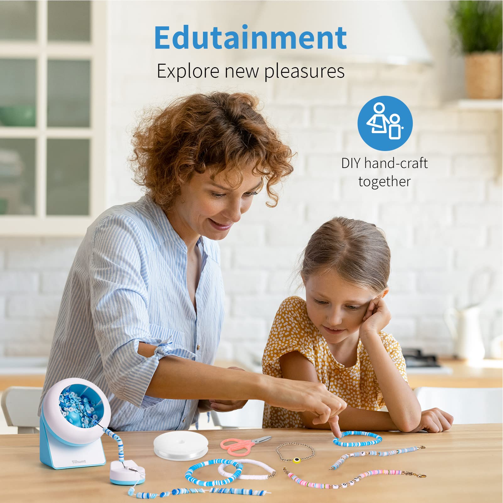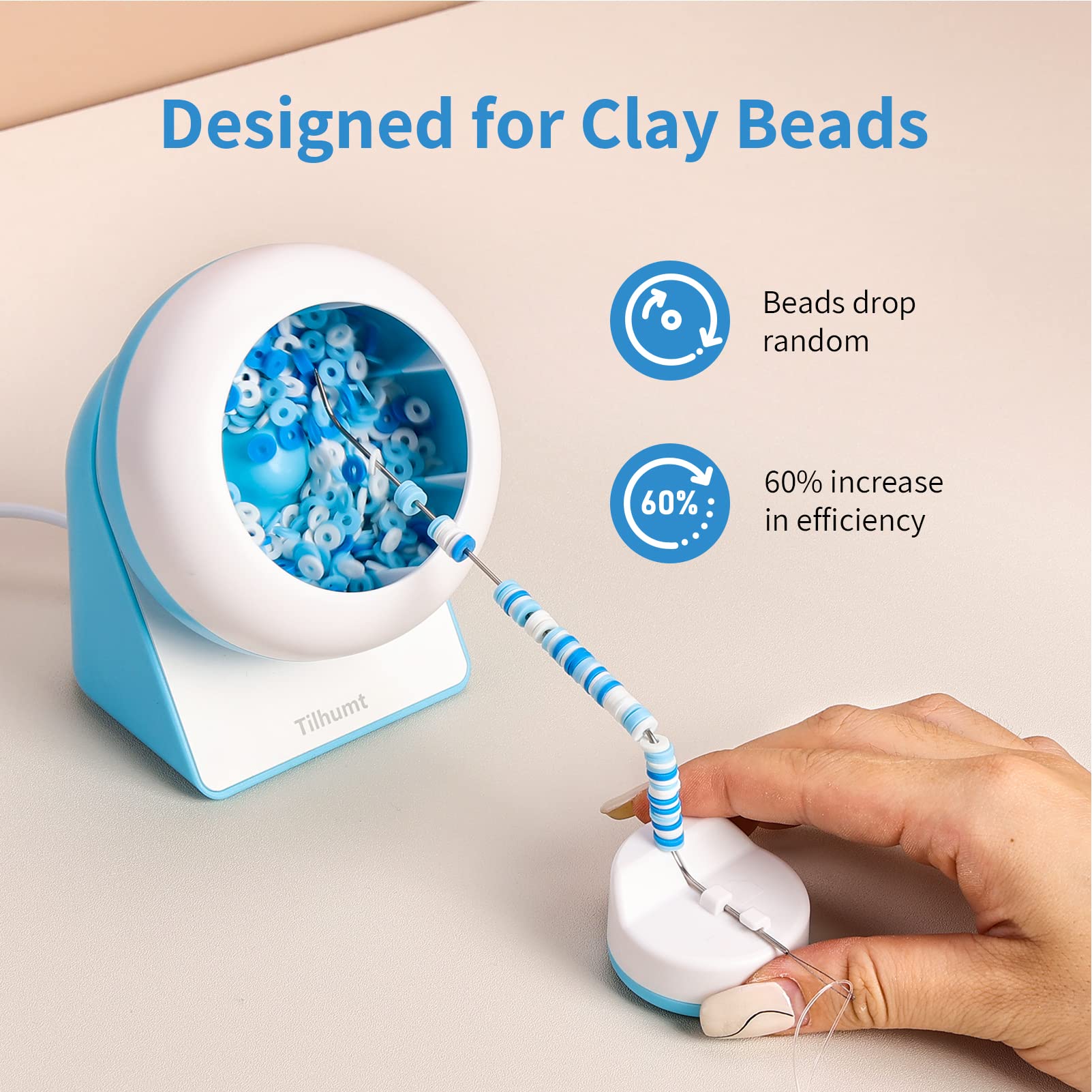 Complete Jewelry Making Kit: Include 1 x bead spinner, 2 x big eye needle, 1 x thread, 3600 x clay beads(18 colors), 50 x letter beads, 10 x pendant, 5 x white shells, 25 x gold stars, 25 x square metal beads, 25 x flat metal beads, 20 x gold metal clasp, 50 x open rings, 10 x lobster clasp, 1 x small Scissor@New Beading Concept: A beader designed specifically for flat beads, 60% increase in beading efficiency. The divider strips on the bowl allow the beads to spin up smoothly and successfully fall into the needle by gravity. The smaller bowl opening ensures beads don't easily fly out while using. It's really a great helper for clay bead art lovers@Easy Operation: Free your hands and save your energy. Adjust the position of the needle base and the angle of the needle and you can wait for it to bead automatically. You can quickly master the skills of using it according to the manual or video. Besides, it comes with a 1.4m USB cable, which is convenient for you to use it anywhere@Designed for Tilhumt Clay Bead Spinner: The big eye needle is specifically designed to be compatible with Tilhumt clay bead spinner, ensuring a perfect fit and smooth operation@Great Gift Choice: Tilhumt clay bead spinner helps you to efficiently create fashionable and beautiful jewelry crafts for friends and family. Not only suitable for jewelry making lovers, but also for small business work. Ideal gift for birthday, Thanksgiving, Mother's Day etc. Note: Parental supervision is recommended for children under 10 years of age