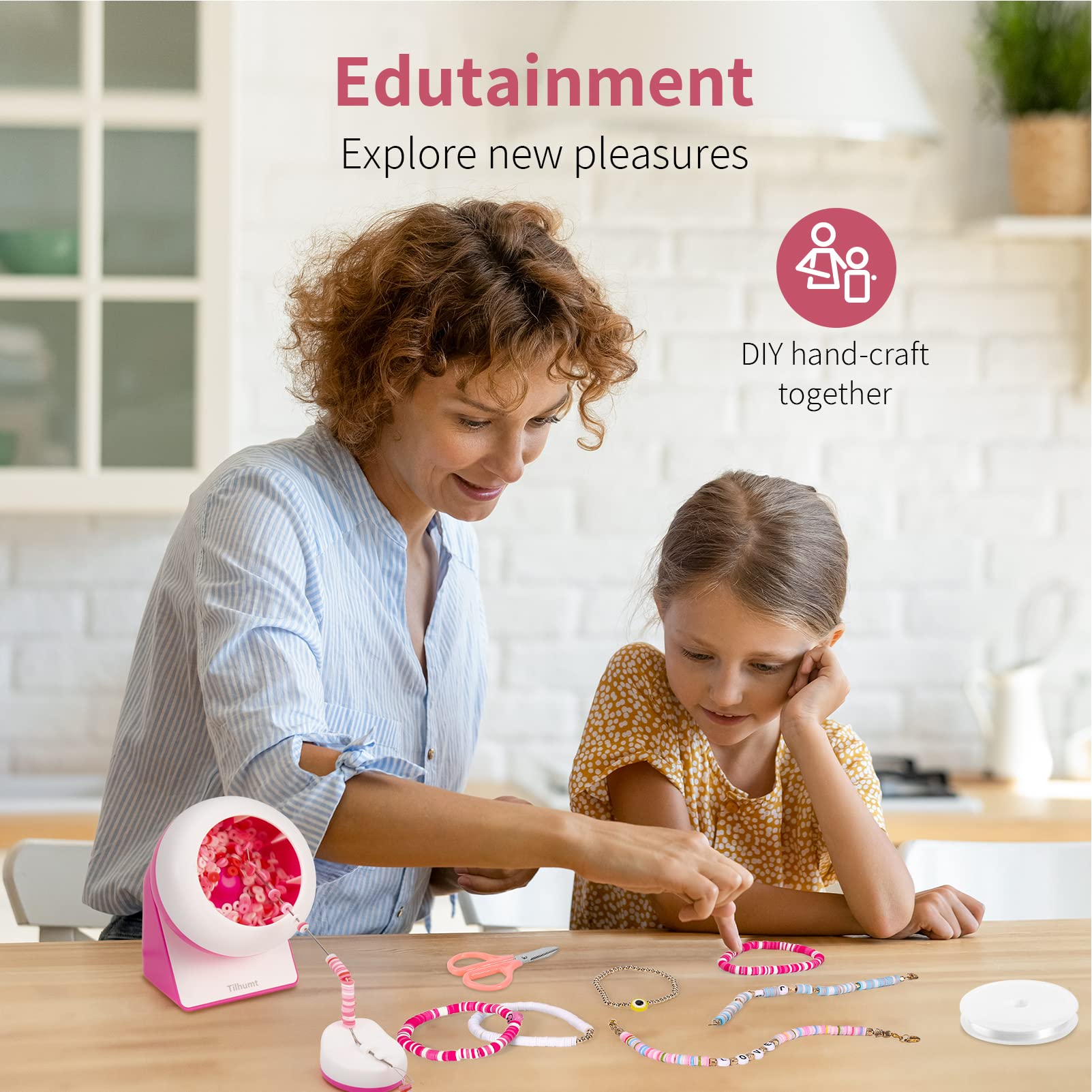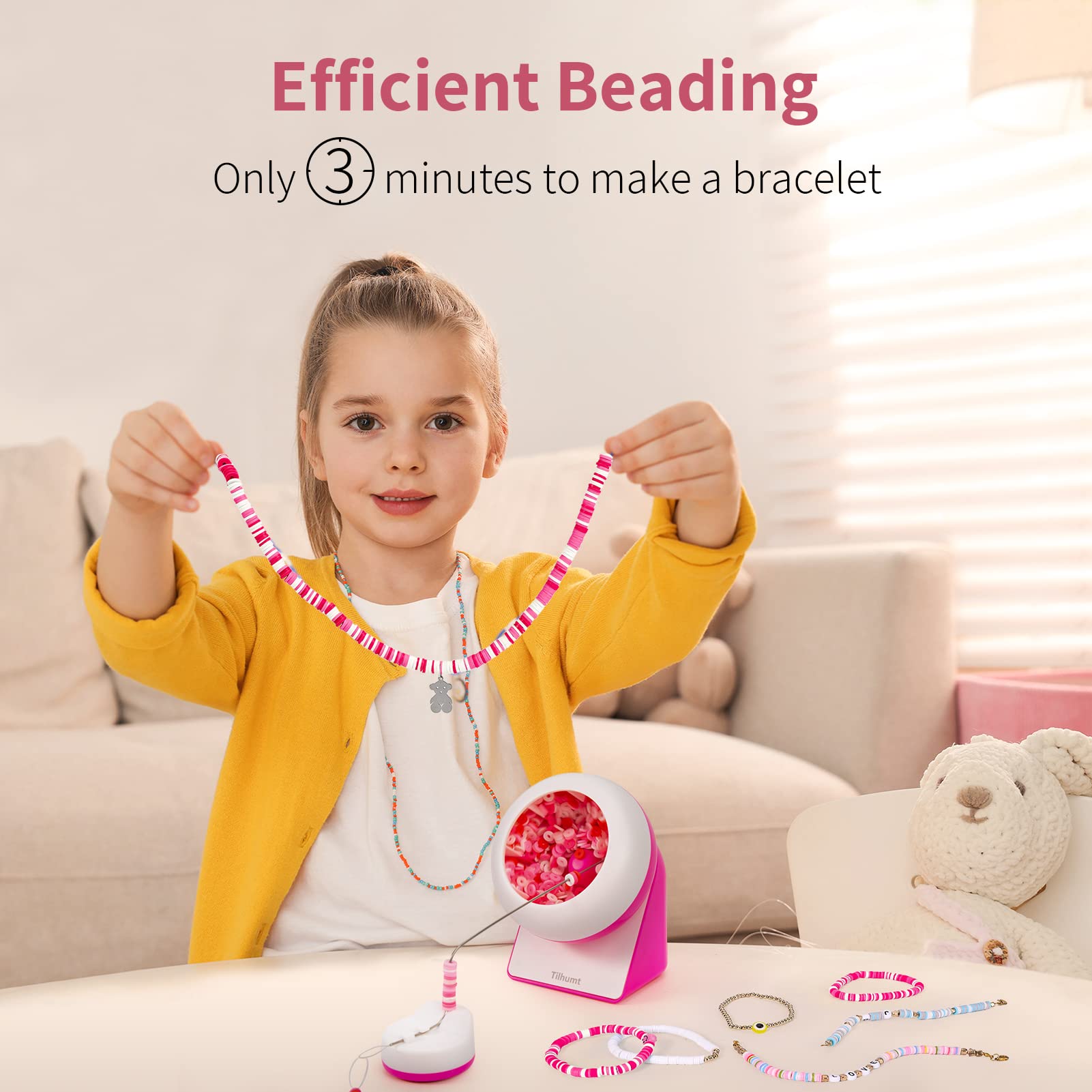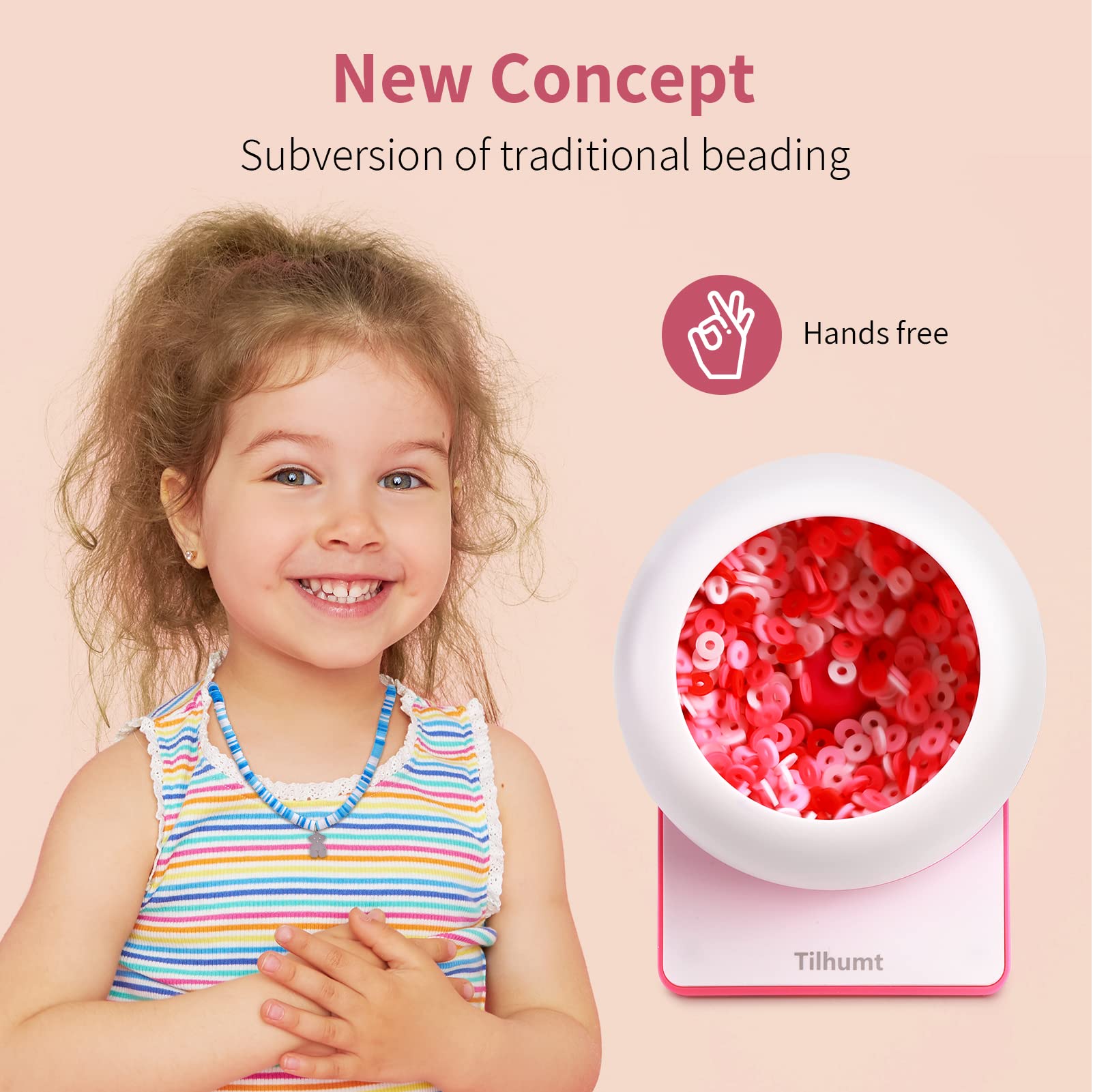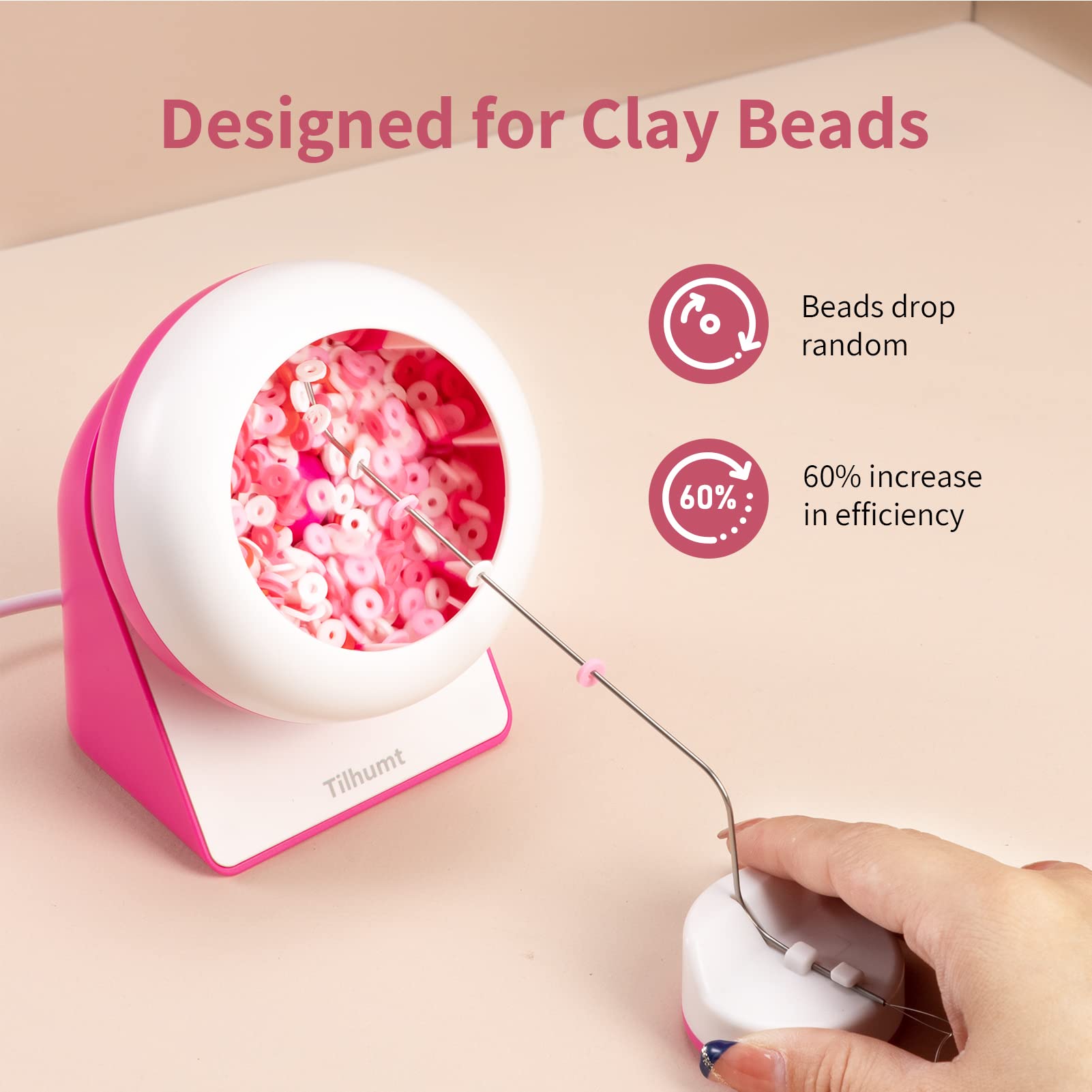 Efficient Beading Innovation: A specialized beader designed for flat beads that increases beading efficiency by 60%! There are divider strips in the bowl that allow beads to spin up smoothly and effortlessly fall into the needle by gravity. The smaller bowl opening ensures that your beads don't easily fly out while using. Perfect for clay bead art enthusiasts@Hands-free Operation: Say goodbye to tedious and time-consuming beading. Simply adjust the angle of the bowl and the needle base, and let the machine do the rest! Comes with a 1.4-meter USB cable, this bead spinner is easy to use anywhere. The instructions and videos make it easy for anyone to master the art of beading@Simple Beading Steps: 1. pour 1/3 of your clay beads into the bowl. 2. string the thread and fix the needle in the beading needle holder. 3. turn on the switch and slowly put the needle into the right side of the bowl, adjusting the position slightly until the beads can fall onto the needle smoothly@Designed for Tilhumt Clay Bead Spinner: The big eye needle is specifically designed to be compatible with Tilhumt clay bead spinner, ensuring a perfect fit and smooth operation@DIY Jewelry Making: Create stunning jewelry in just three minutes with the electric clay bead spinner! This efficient and labor-saving bead spinner turns the boring beading process into an exciting experience. Perfect for DIY novices, our bead spinner lets you enjoy the fun of beading and create magical jewelry pieces that will impress everyone