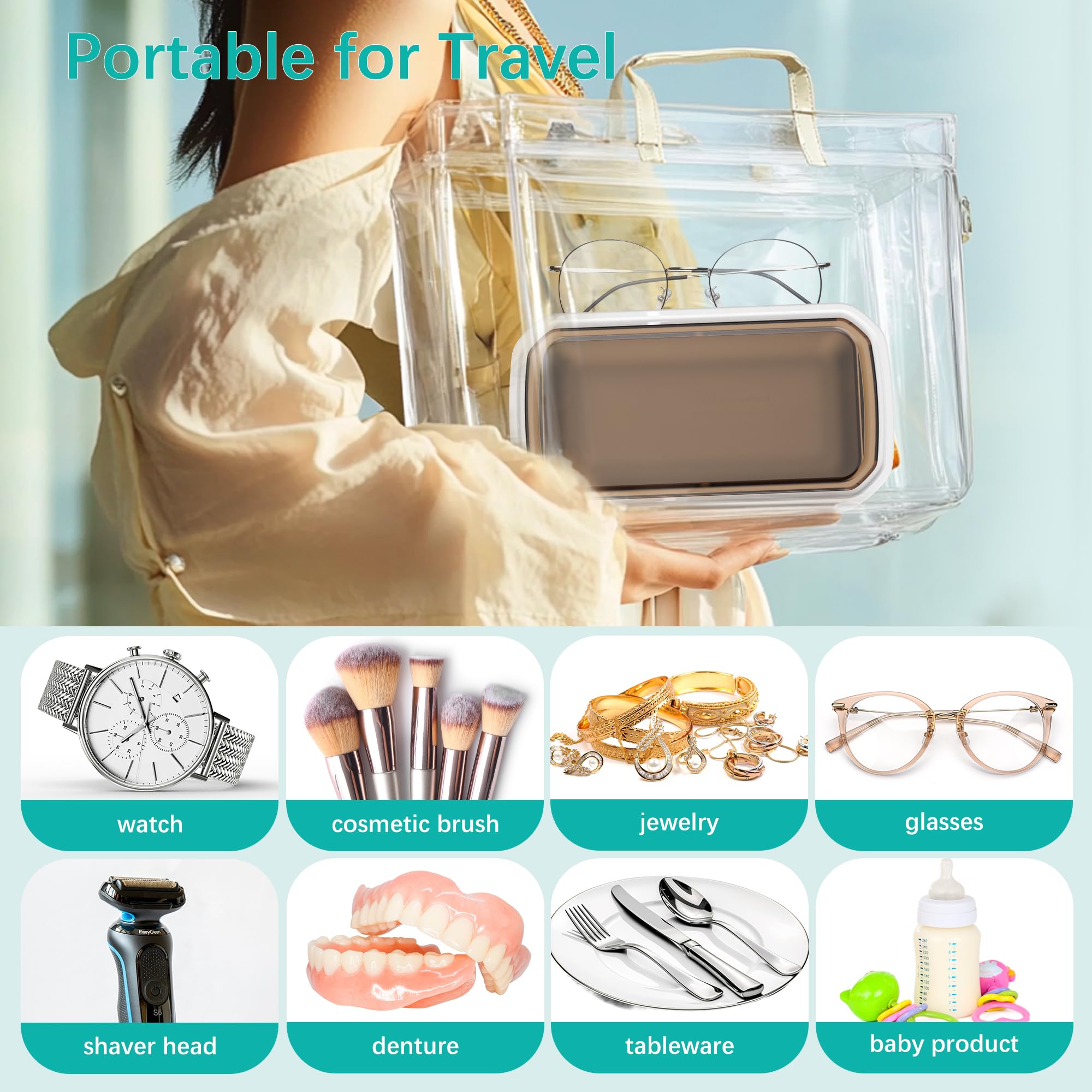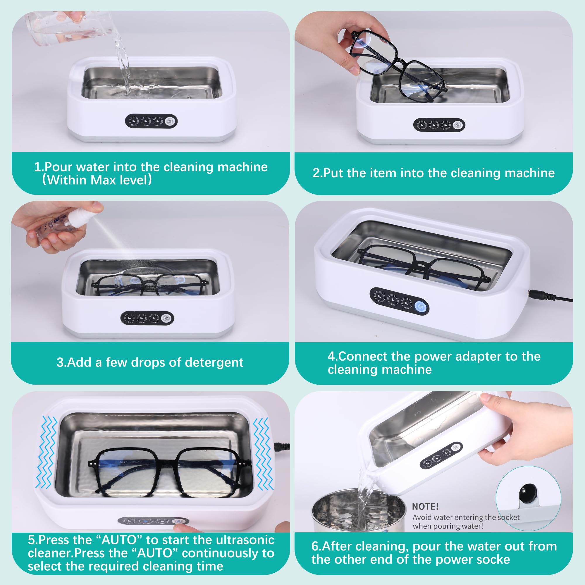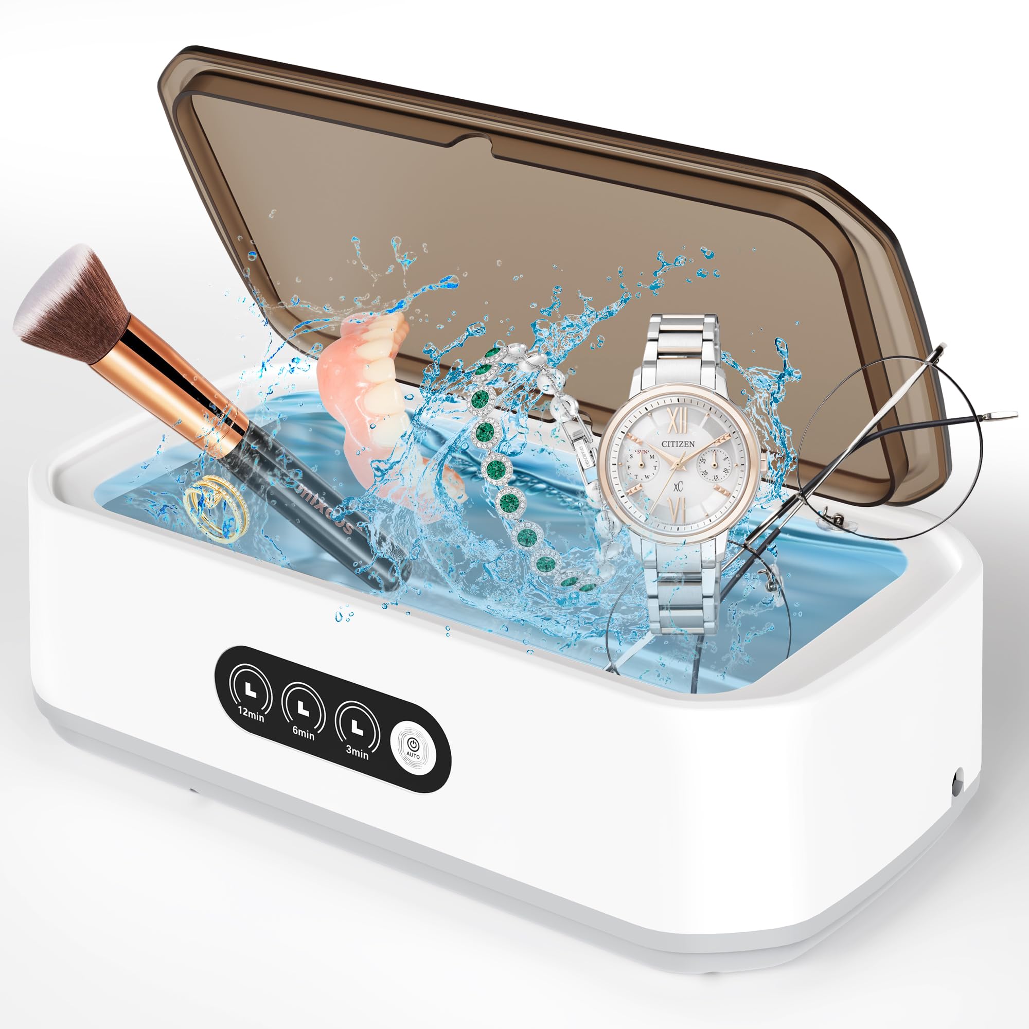 Hochfrequenzreinigung: Der Ultraschall-Schmuckreiniger erzielt makellose Ergebnisse mit 49kHz Ultraschallwellen, die Mikroblasen erzeugen für eine kraftvolle, aber sanfte 360°-Reinigung, ideal zum Wiederherstellen des Glanzes Ihrer Wertsachen.@Langlebiges und umweltfreundliches Design: Der Ultraschall-Zahnspangenreiniger aus 304 Edelstahl und ABS-Kunststoff ist langlebig, bietet Korrosionsbeständigkeit und eine robuste Struktur für den langfristigen Gebrauch.@Vielseitige Reinigungsmodi: Der Ultraschall-Brillenreiniger bietet die Wahl zwischen 3-, 6- oder 12-Minuten-Zyklen mit einem einfachen Knopfdruck. Die Ein-Klick-Bedienung sorgt jedes Mal für eine mühelose Bedienung und effiziente Reinigung.@Geräumige 650ML Kapazität: Der Ultraschall-Schmuckreiniger fasst eine Vielzahl von Gegenständen, von Schmuck und Brillen bis hin zu Zahnprothesen, und ist ideal für den persönlichen und häuslichen Reinigungsbedarf.@Tragbar und praktisch: Leicht und kompakt, ist dieser Ultraschallreiniger perfekt für den Einsatz zu Hause, im Büro oder auf Reisen. Er ist auch ein durchdachtes Geschenk für jeden, der effektive Reinigungslösungen schätzt.