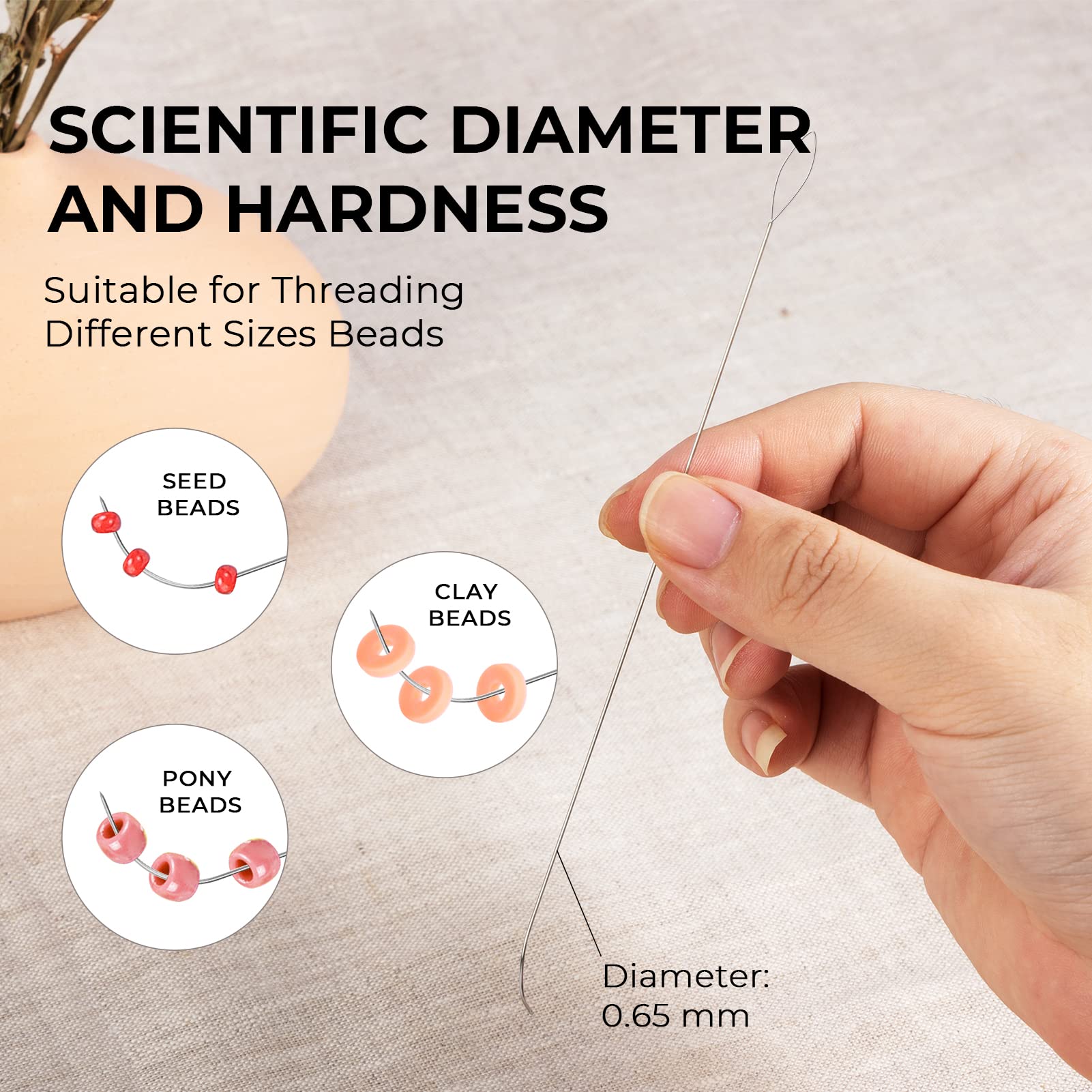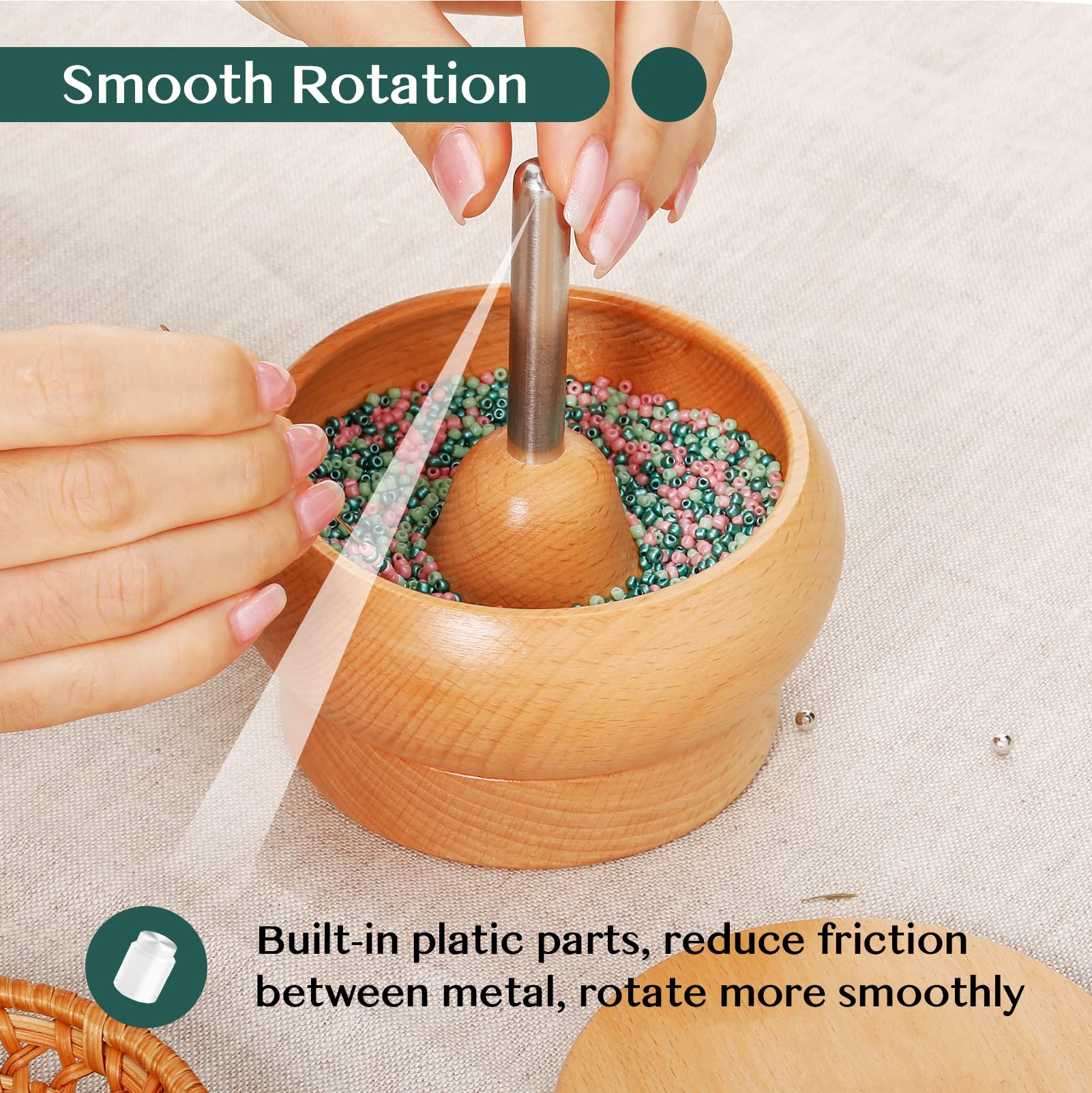 Beading Beginners Set: 1 x 9 cm diameter wooden bead spinner, 8 x beading needle, 3000 x 2 mm seed beads(3 color). The cost-effective bead kit allows you to experience the fun of beading efficiently@Flexible Needle Eye: Tough and soft open needle eye can be adjusted for easy threading, resilient and not easily deformed, more convenient for next threading@Featured Material: Made of natural beech, strong and durable. The heavy base and stainless steel shaft prevent the bead loader from moving during spinning, making for more stable and smooth working@Superior Experience: The surface of the bead bowl is polished smooth and burr-free, making beading easier. There is a gap between the bowl and the base for easy rotation and no noise@Excellent Gift: Tilhumt bead bowl spinner set is the perfect gift for friends and family, use this to make beautiful jewelry, such as waist beads, bracelets, necklaces. Send them enjoy the fun of crafting